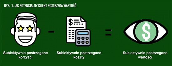 Potencjalny klient, który rozważa zakup Twojego produktu lub usługi, bierze pod uwagę nie tylko cenę. Dlaczego? Nasz mózg ewolucyjnie przystosowany został do zapamiętywania negatywnych emocji i zdarzeń – dzięki temu przetrwaliśmy jako gatunek. Nie dziw się więc, że potencjalny klient ostrożnie podchodzi do inwestycji. Analizując ofertę, rozwiązuje w myślach równanie, którego składowymi są subiektywnie postrzegane koszty związane z zakupem i wdrożeniem produktu lub usługi z subiektywnie postrzeganymi korzyściami, które jego firma i on uzyska po zakupie.
