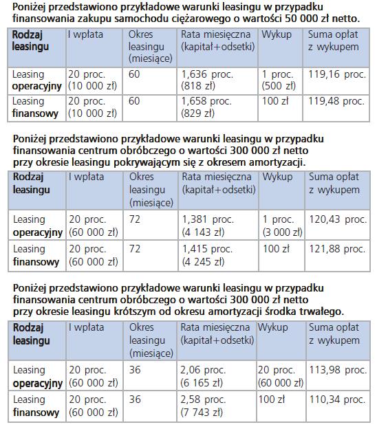 Firmy leasingowe preferują najczęściej nowe lub mało używane przedmioty leasingu, natomiast w przypadku kredytu pochodzenie środka trwałego oraz jego wiek nie mają praktycznie znaczenia.