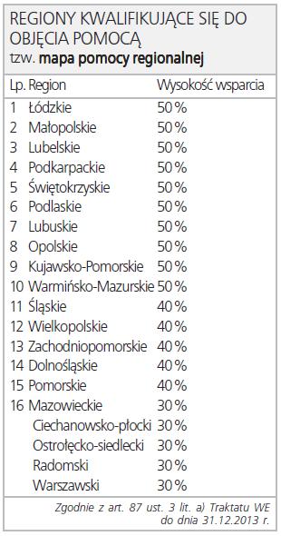 Tabela 1. Regiony kwalifikujące się do objęcia pomocą zgodnie z art. 87 ust. 3 lit. a) Traktatu WE do dnia 31.12.2013 r. tzw. mapa pomocy regionalnej