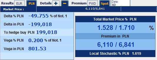 Wyniki wyceny trzymiesięcznej opcji call z kursem wykonania EUR/PLN 4.00 (nominał 100.000EUR)