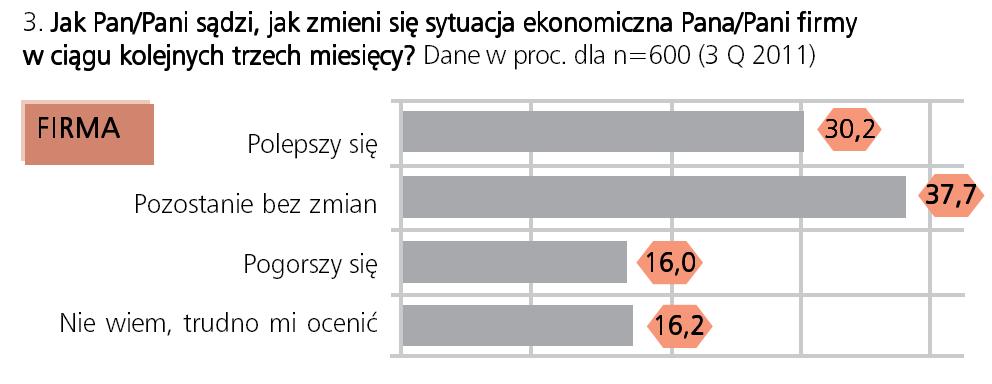 4. Jak Pan/Pani sądzi, jak zmieni się sytuacja ekonomiczna Pana/Pani firmy w ciągu kolejnych trzech miesięcy? Dane w proc. dla n=600 (3 Q 2011)