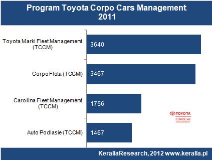 Wśród dealerów Toyoty promujących management flot, największe floty obsługują Toyota Marki (3640), Corpo Flota (3467), Carolina FM (1756) i Auto Podlasie (1467). W całym programie zarządczym Toyoty jeździ 13 575 samochodów służbowych.