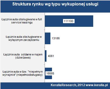 Z badania Keralla Research wynika, że najlepiej sprzedającą się ofertą w 2011 r. był wariant full service leasing oraz tzw. leasing niepełnoobsługowy (leasing plus okrojony serwis).