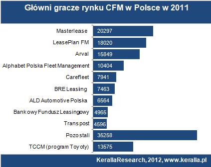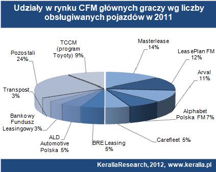 Badania Keralla Research pokazują, że rynek CFM rozwinął się w 2011 r. o 9 proc. rok do roku w liczbie obsługiwanych samochodów oraz 20 proc. rok do roku w liczbie klientów. Na koniec roku 144 932 pojazdy były użytkowane w przedsiębiorstwach, jako auta wynajęte od firm zewnętrznych typu Car Fleet Managment. Klientów, którzy zdecydowali się przekazać samochody w zarządzanie specjalistom przybyło do 16,6 tys.