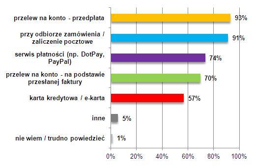 Metody płatności stosowane w ankietowanych sklepach internetowych
