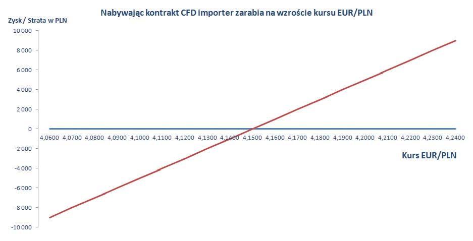 Ryzyko przed deprecjacją waluty krajowej można w całości zniwelować przez otwarcie długiej pozycji na kontrakcie różnicy kursowej (CFD) na parze EUR/PLN. W ten sposób, w przypadku wzrostu kursu EUR/PLN inwestor otrzyma różnicę między bieżącym (wyższym) kursem rynku euro-złoty, a ceną przy otwarciu zlecenia.