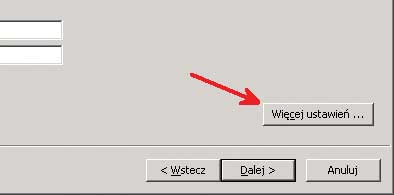 Aby skonfigurować zaawansowane właściwości konta, takie jak np. szyfrowanie czy porty, należy kliknąć przycisk Więcej ustawień…: