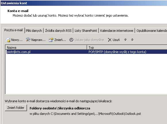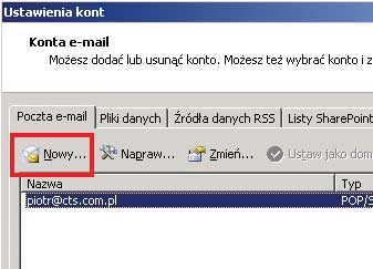 Aby dodać nowe konto pocztowe należy kliknąć przycisk Nowy…: