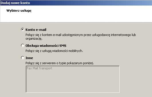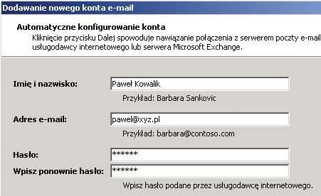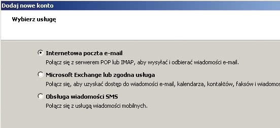 Kreator dodawania nowego konta pojawia się również automatycznie przy pierwszym uruchomieniu programu Microsoft Outlook.