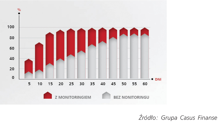 Jak pokazują dane, narzędziem o niezwykle dużej skuteczności służącej zarządzaniu cash flow jest monitoring. W bardzo dużym stopniu minimalizuje on opóźnienia płatnicze, a w konsekwencji pozwala zmniejszyć ryzyko zatorów płatniczych i odsuwa widmo niewypłacalności. :