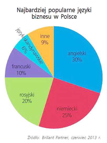 Z analiz przeprowadzonych przez Brillant Partner wynika, że w dalszym ciągu to angielski (30 proc. zapytań) i niemiecki (25 proc.) są podstawowymi językami biznesu dla polskich menedżerów. Na znaczeniu zyskuje jednak język rosyjski (20 proc.) i francuski (10 proc.), a także języki skandynawskie, jak fiński, duński, norweski i szwedzki.