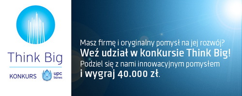 Ruszył konkurs „Think Big” dla małych firm z globalnymi ambicjami organizowany przez UPC Biznes, dostawcę elastycznych usług telekomunikacyjnych dla firm. Jest on dedykowany wszystkim przedsiębiorcom, którzy chcą rozwijać swoją działalność poprzez innowacyjne technologie i rozwiązania. Do zdobycia jest 40 000 złotych oraz wiedza i doświadczenie, które pomogą przekuć potencjał firmy w rzeczywisty sukces.