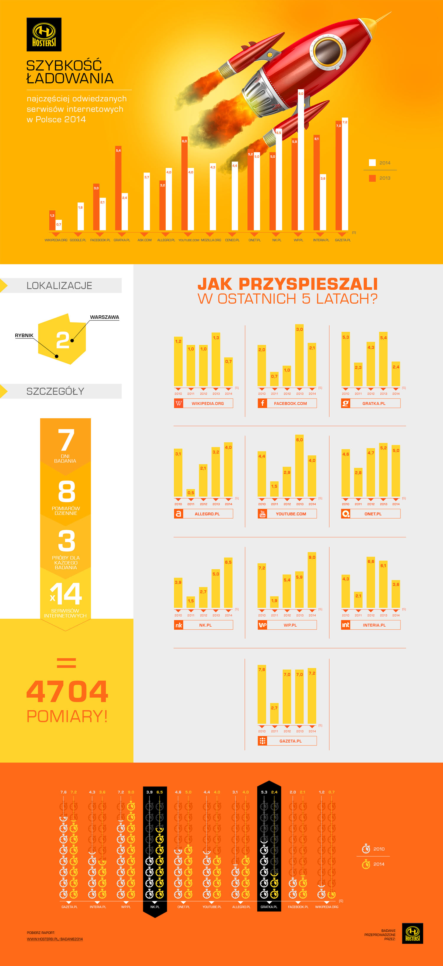 Szybkość ładowania najczęściej odwiedzanych serwisów internetowych w Polsce – 2014. Badanie przeprowadzone przez firmę Hostersi.
