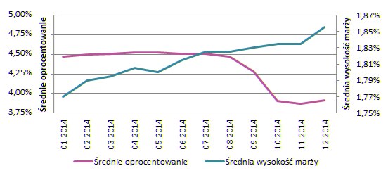 W grudniu 2014 średnia zdolność kredytowa rodziny wyniosła 474 628 złotych i była o 1,3 proc. wyższa niż miesiąc wcześniej. Największa kwotę oferował Bank Pekao S.A. (498 tys. złotych), Bank BGŻ (497 tys. złotych) i Bank Millennium (489 tys. złotych). Średnia wysokość marży wyniosła 2,87 procent.