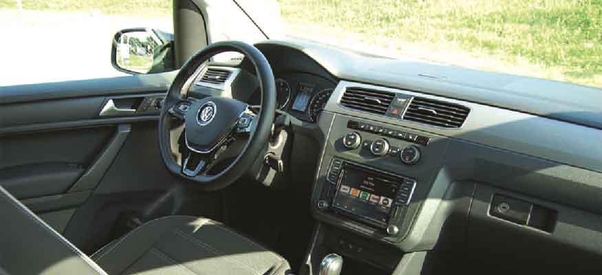 Wyświetlacz i zegary są bardzo czytelne. W Caddy Kombi znajdziemy pełną gamę różnych schowków, które zapewniają ład i porządek, a przede wszystkim wzorową organizację dokumentów i innych atrybutów niezbędnych w pracy. Wszystko ma swoje miejsce – zarówno rękawice robocze, jak i miarki składane i śniadaniówka.