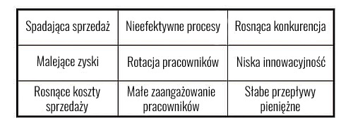 W tabeli 1 przedstawiłem typowe problemy firm z sektora MŚP, które są najczęściej impulsem do rozpoczęcia poszukiwań.