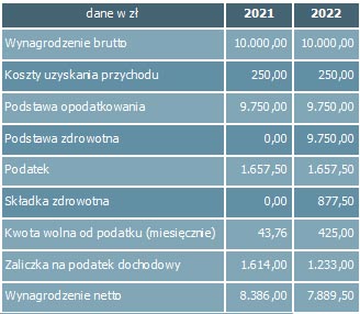 Asia i Jarek są małżeństwem. Prowadzą wspólnie firmę – agencję reklamową – jako spółka z o.o. Firma działa od 3 lat. Do tej pory wypłacali sobie honorarium pod postacią wynagrodzenia dla zarządu, po 10 tys. zł miesięcznie. Zmiany związane z Polskim Ładem powodują, że od tej kwoty będą zmuszeni odprowadzić dodatkowo składkę zdrowotną. W związku z tym chcą przejść na wynagrodzenie dla wspólników oraz zostawić sobie po 1 tys. zł jako wynagrodzenie dla zarządu.