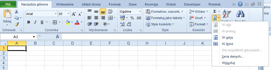 Wybierz zakładka Narzędzia główne | Edytowanie | Wypełnij | Seria danych