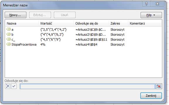 Definiowanie nazw zakresów komórek w skoroszycie
