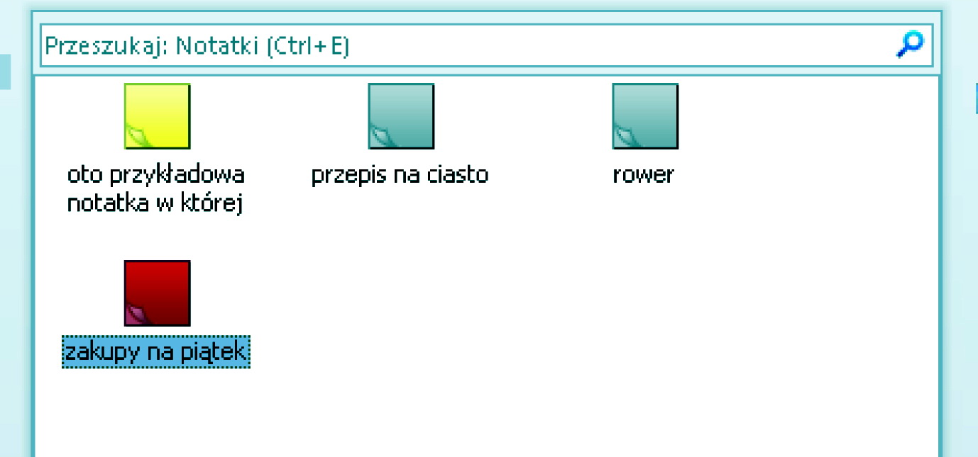 Dodatkowo kategoryzowanie notatek pozwala wyświetlać je pogrupowane kategoriami, jeśli zostanie włączony widok Według kategorii.