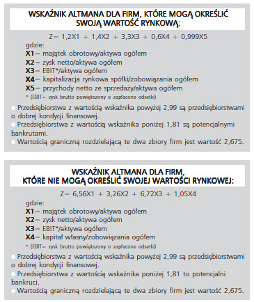 Wśród zaproponowanych przez Altmana sposobów oceny kondycji finansowej przedsiębiorstwa najbardziej znany jest ten stosowany przez firmy, które mogą określić swoją