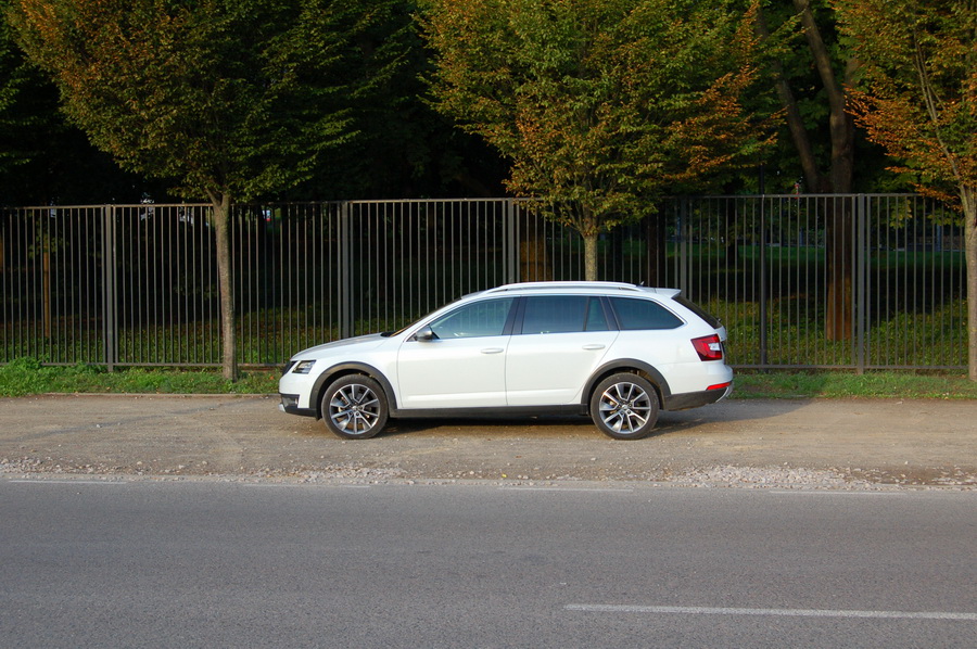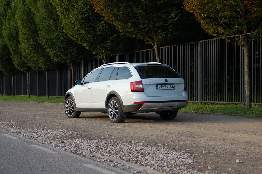 Auto jest podwyższone o 30 mm, ma podwyższony do 14,5 stopnia kąt zejścia, a dodatkowo zastosowano w nim adaptacyjne zawieszenie DCC, dzięki czemu SCOUT bez problemu poradzi sobie w każdych warunkach drogowych. Do tego napęd na cztery koła, zapewniający doskonałą przyczepność, i mamy SCOUT-a, który swobodnie może konkurować z niejednym SUV-em. Tryb Off-Road przełącza wszystkie systemy w specjalne ustawienia - reakcja pedału gazu jest wówczas mniej czuła, a system HDC utrzymuje stałą prędkość zjazdu ze stromych wzniesień.