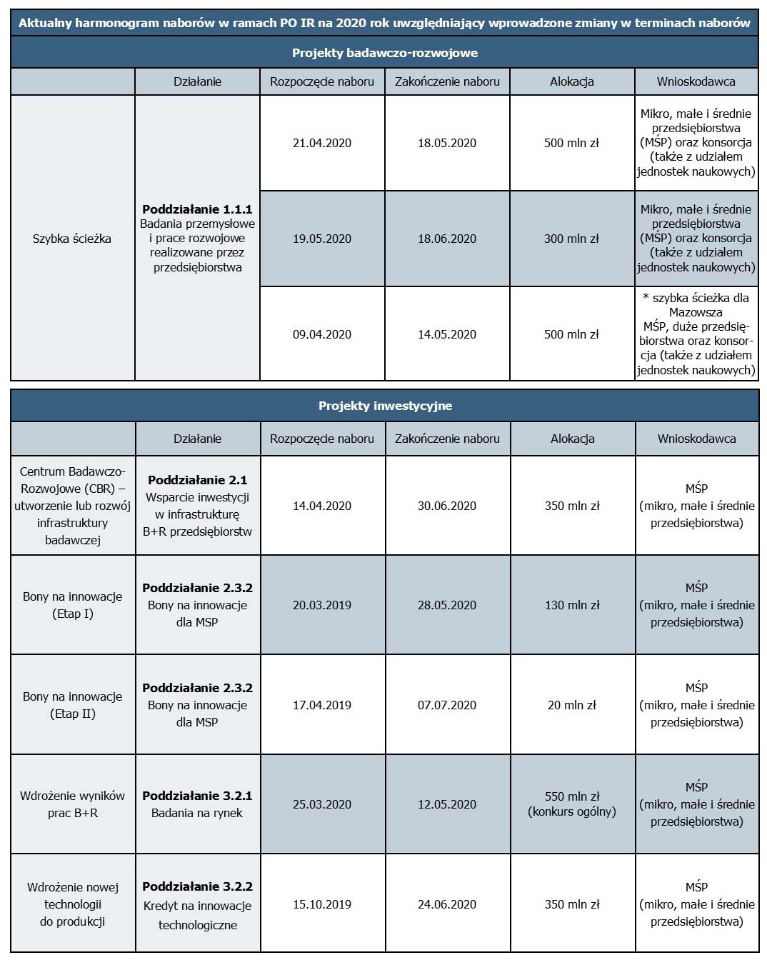 W pierwszej kolejności podjęto decyzję o wydłużeniu terminów naborów wniosków, żeby w okresie narodowej kwarantanny przedsiębiorcy mogli skoncentrować się na sprawach najistotniejszych dla swoich firm i mieli większy komfort przy składaniu wniosków o dotacje. Dodatkowo niektóre nabory prowadzone są w trybie ciągłym, czyli są podzielone na kilka rund, co również jest sporym udogodnieniem z uwagi na obecną sytuację.