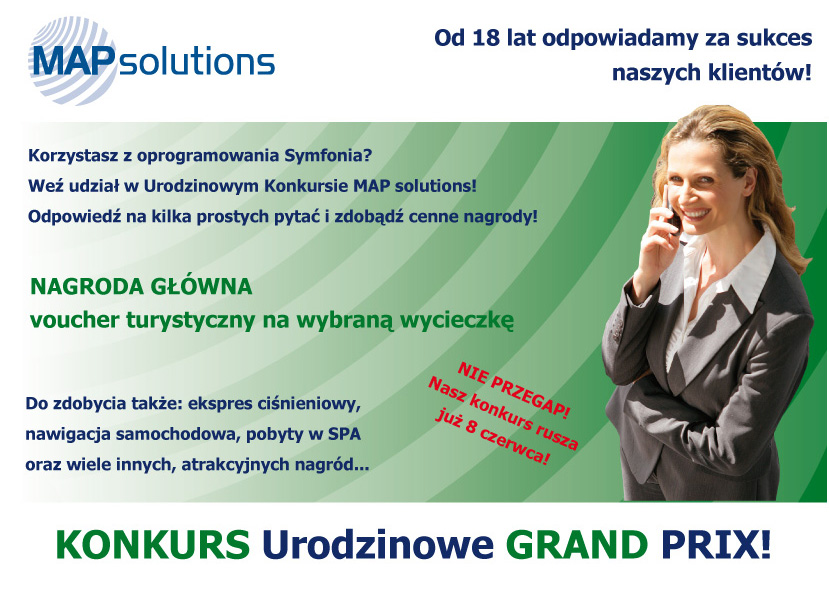 Już 8 czerwca, we wtorek rusza wielki konkurs z okazji 18 urodzin firmy MAP solutions. Zachęcamy do zapoznania się ze szczegółami konkursu i zapraszamy do wspólnej zabawy.