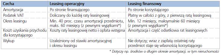 Wracając do głównego wątku – podstawową różnicą między leasingiem finansowym a leasingiem operacyjnym jest zatem prawo do dokonywania odpisów amortyzacyjnych, które ma istotny wpływ na wysokość kosztów podatkowych korzystającego.