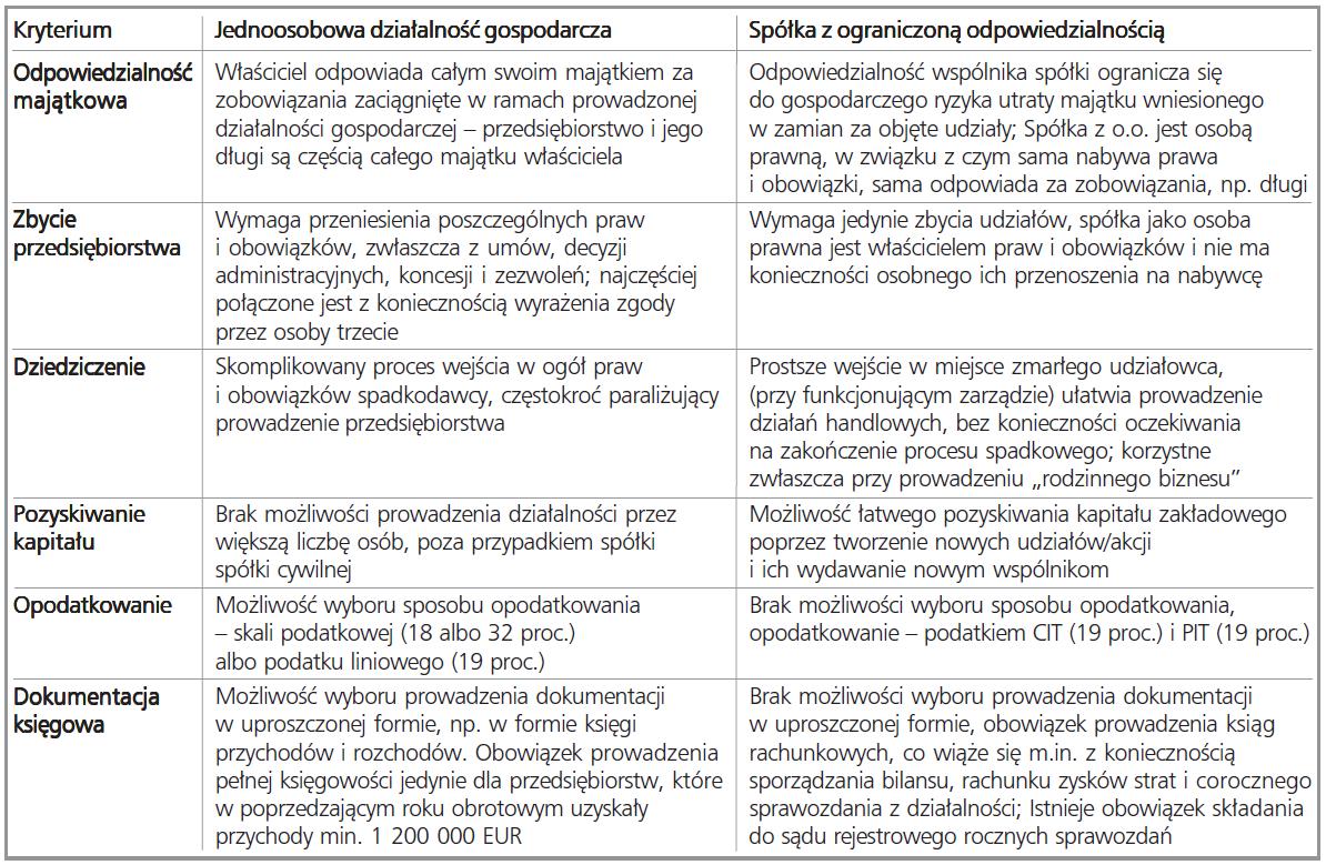Poniżej wskazaliśmy wybrane różnice związane z funkcjonowaniem jednoosobowej działalności gospodarczej i spółki z ograniczoną odpowiedzialnością: