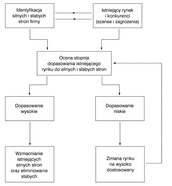 2) dopasowanie zasobów firmy do pojawiających się okazji w otoczeniu.