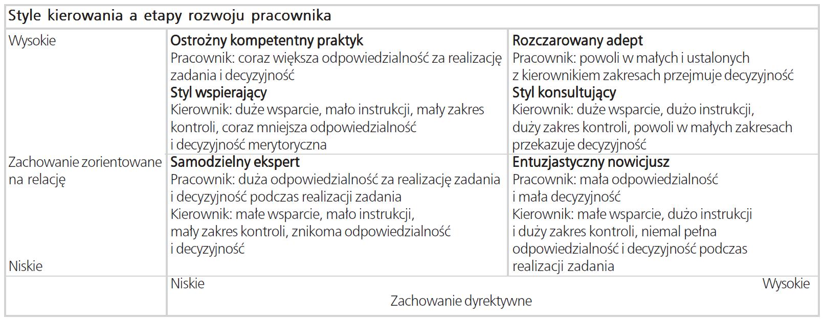Do każdego etapu rozwoju pracownika należy zastosować inny styl zachowania kierownika. Blanchard wyróżnił cztery style zachowania.