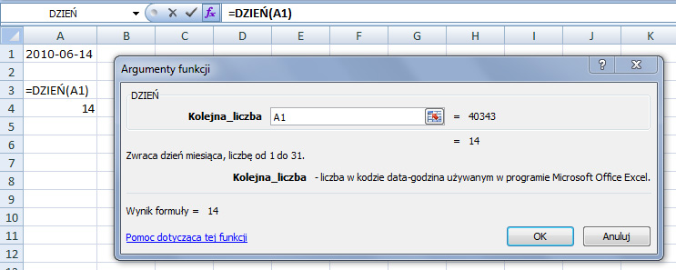 Liczba_kolejna to data poszukiwanego dnia. Daty powinny być wprowadzane przy użyciu funkcji DATA lub jako wynik innych formuł lub funkcji. Np. funkcji DATA(2008;5;23) można użyć dla dnia 23 maja 2008. Problemy mogą wystąpić, jeżeli daty są wprowadzane jako tekst.