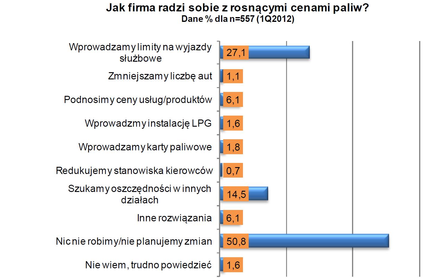 Posiadający auta służbowe, którzy nie prowadzą żadnych szczególnych działań w tym zakresie, stanowią 50,8 proc. ankietowanych.