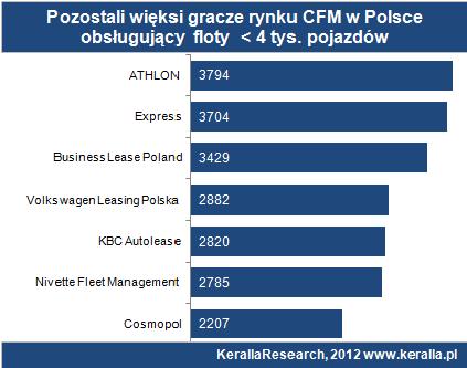 Badania Keralla Research pokazują, że rynek CFM rozwinął się w 2011 r. o 9 proc. rok do roku w liczbie obsługiwanych samochodów oraz 20 proc. rok do roku w liczbie klientów. Na koniec roku 144 932 pojazdy były użytkowane w przedsiębiorstwach, jako auta wynajęte od firm zewnętrznych typu Car Fleet Managment. Klientów, którzy zdecydowali się przekazać samochody w zarządzanie specjalistom przybyło do 16,6 tys.