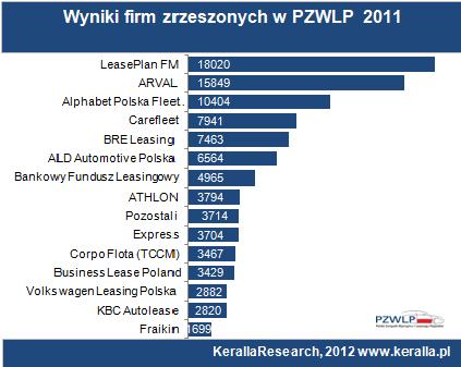 Firmy zrzeszone w Polskim Związku Wynajmu i Leasingu Pojazdów łącznie obsługiwały na koniec roku 96 715 samochodów w różnych formach wynajmu, co daje 67 proc. udziału w krajowym rynku. Należy dodać, że statystyki obejmują również usługę najmu (dzierżawy), którą pomijają statystyki prezentowane przez PZWLP, przez co dane mogą się nieznacznie różnić.