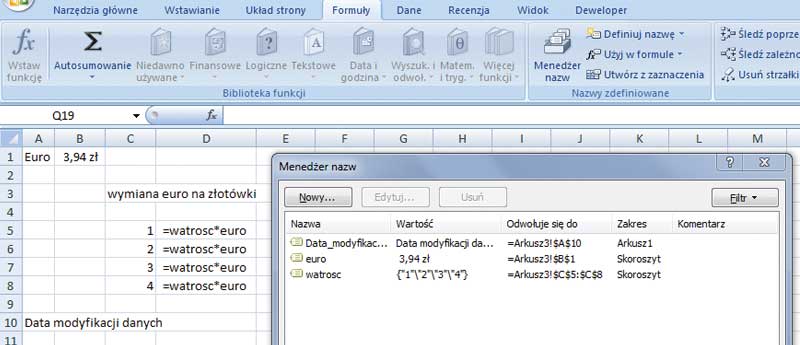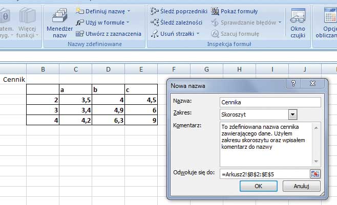 4. Możesz wykorzystywać zdefiniowane nazwy na różne sposoby: