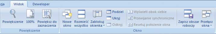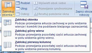 Po wybraniu tej opcji mamy do wyboru: zablokuj okienka, zablokuj górny wiersz, zablokuj pierwszą kolumnę.