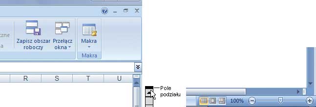 Należy zlokalizować pasek podziału na górnym końcu paska przewijania w pionie oraz na prawym końcu paska przewijania poziomego.