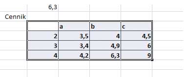 Utwórz nowy skoroszyt, w arkuszu pierwszym umieść następujące dane: