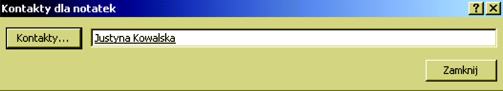 Outlook wyświetli wówczas okienko Kontakty dla notatek, w którym można przypisać notatkę do jednej lub wielu osób.