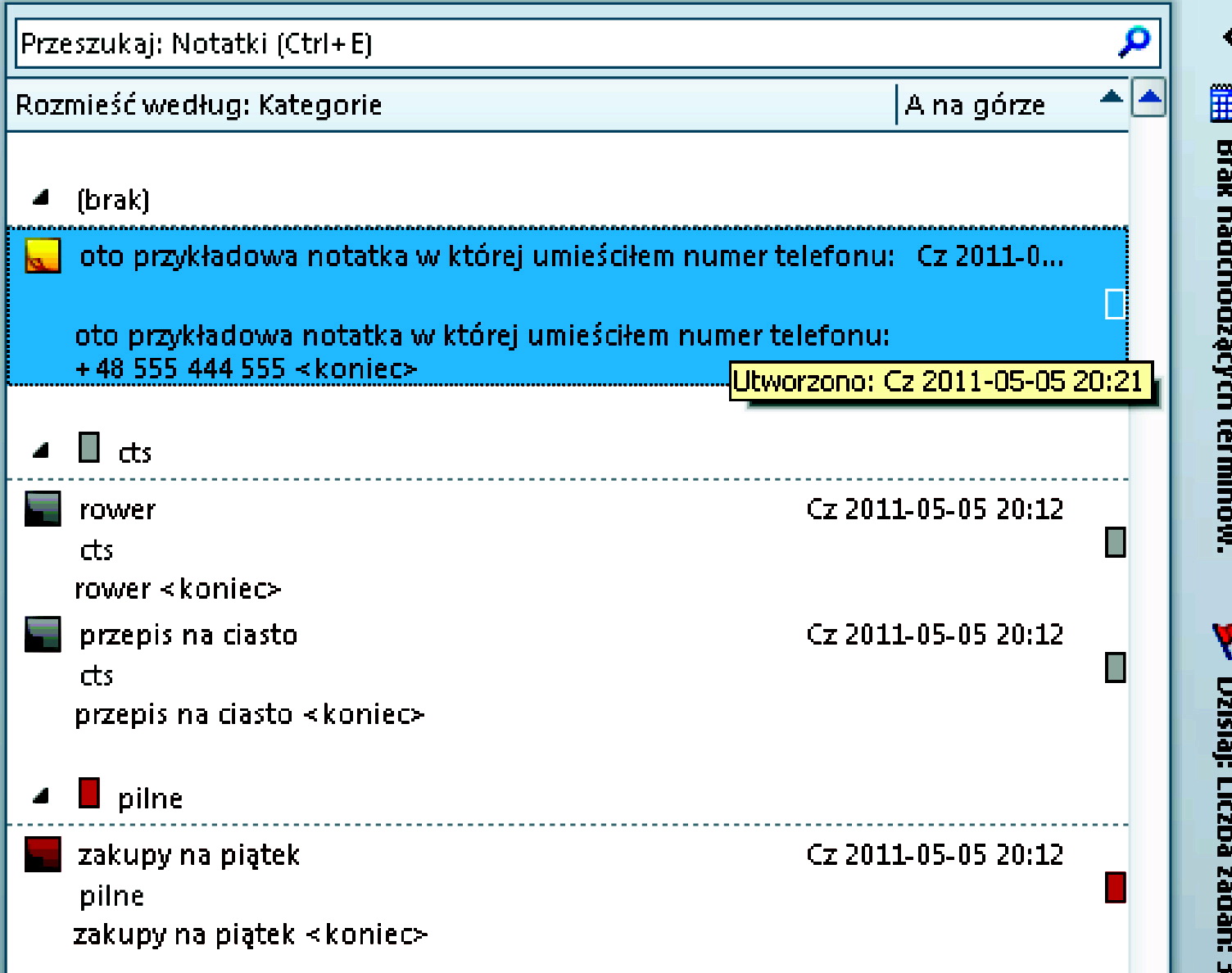 Dodatkowo kategoryzowanie notatek pozwala wyświetlać je pogrupowane kategoriami, jeśli zostanie włączony widok Według kategorii.