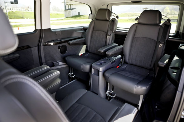 Viano Grand Edition to luksusowy van. Auto wyposażone jest w sześć bardzo wygodnych, osobnych foteli, które możemy dowolnie ustawiać (łącznie z przekręceniem tyłem do kierunku jazdy). A zatem nie tylko kierowca może liczyć na pełen pakiet funkcji – pasażerowie również.