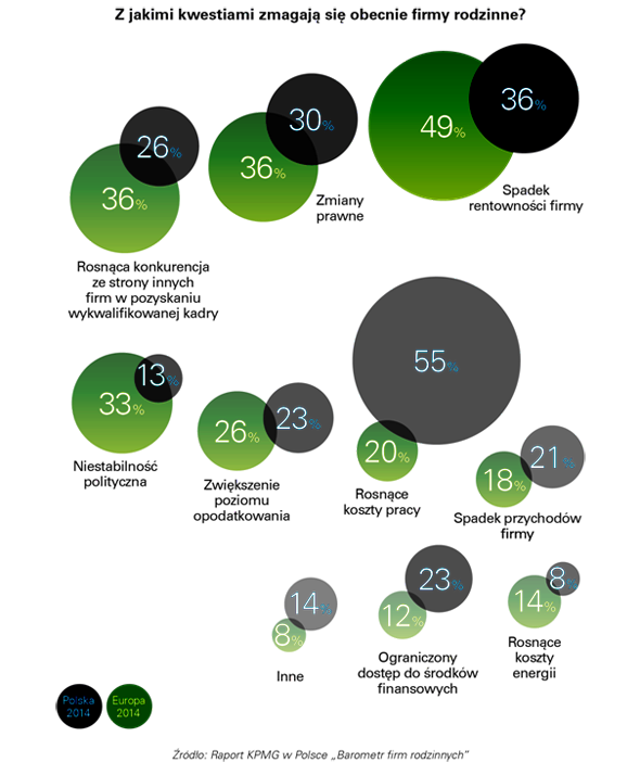 Największym zmartwieniem europejskich firm rodzinnych jest z kolei spadek rentowności, na który wskazała blisko połowa (49 proc.) respondentów. Jest to jednocześnie drugi najczęściej sygnalizowany problem polskich firm rodzinnych.