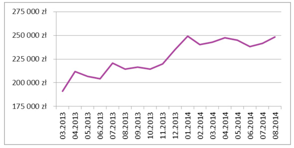 Największą kwotą kredytu singiel mógł dostać w sierpniu w Banku Pekao SA. Była to kwota 287 tys. złotych. Kredyt na 278 tys. złotych mógł dostać w mBanku, a 277 tys. złotych w Banku BGŻ. Średnia zdolność kredytowa singla wyniosła w sierpniu 248 234 złote i była wyższa niż w lipcu o 6 811 złotych. Marża wyniosła średnio 1,84%
