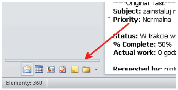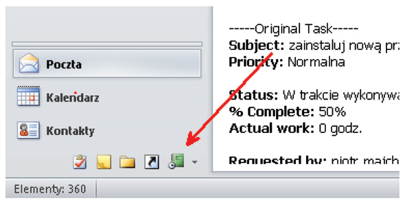 Ciekawostką jest, że dziennik nie jest domyślnie pokazywany w okienku nawigacji Outlook’a.