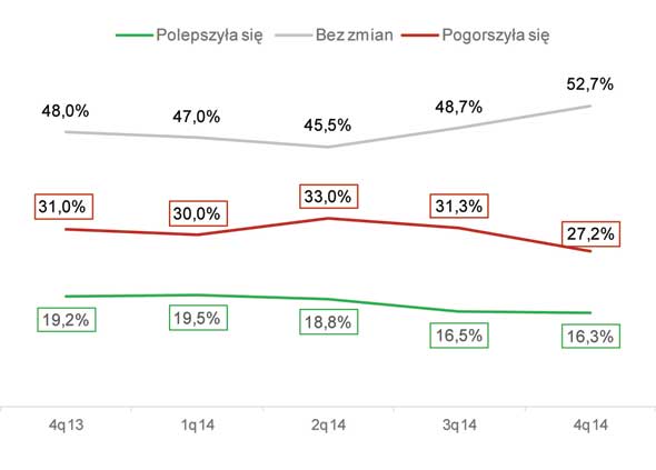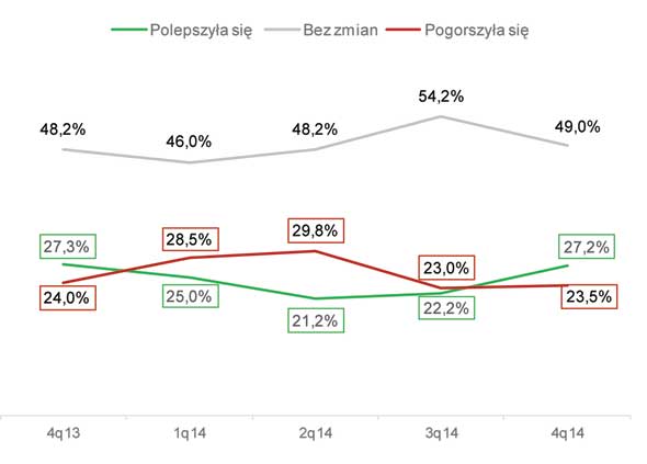 Co jednak ciekawe, przybyło firm, które informują o polepszeniu swojej sytuacji ekonomicznej (27,2 proc.) w minionych trzech miesiącach. Takie opinie korelują z dość dobrą, stabilną oceną sytuacji gospodarczej kraju w poprzednim kwartale.
