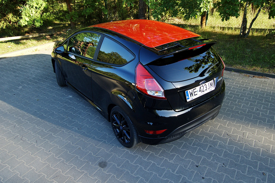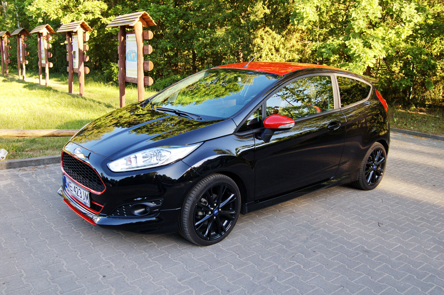 Czarny lakier z czerwonymi elementami prezentuje się naprawę imponująco. Fiesta mówi sama za siebie – jestem charakterystyczna, niepowtarzalna, elegancka i bardzo śmiała. Czerwone akcenty na dachu, lustrach i wokół potężnego grilla zapowiadają ekscytującą przygodę…
