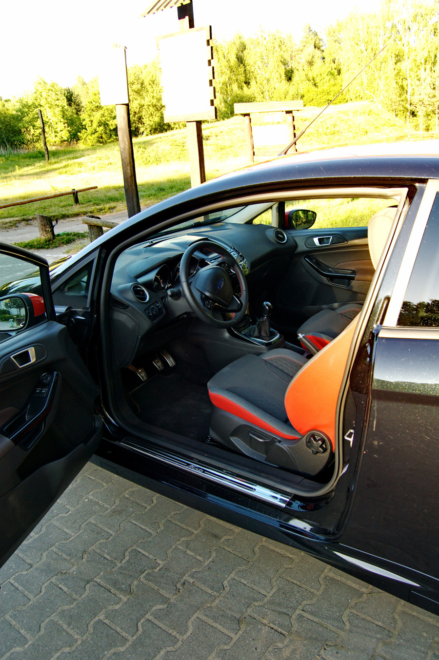 Nie bez znaczenia jest również wnętrze – także utrzymane w sportowym stylu. Głębokie, dobrze trzymające sylwetkę fotele, wygodnie umieszczony drążek skrzyni biegów i optymalnie regulowana kierownica – całość sprawia, że Fiesta staje się fantastycznym autem zarówno dla szalonego małolata, faceta, który chce przypomnieć sobie młodość i wyruszyć na imprezę na sopockie mole, ale też też dla babki, która nie boi się prędkości i czyhających za rogiem policjantów z radarami.