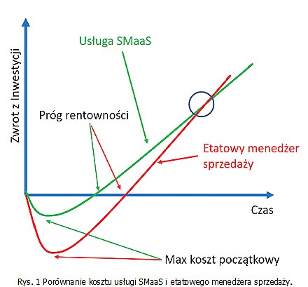 Na rys. 1 pokazano, porównanie zwrotu z inwestycji dla dwóch przypadków tj., gdy firma zatrudnia menedżera sprzedaży oraz gdy firma korzysta z usługi SMaaS.